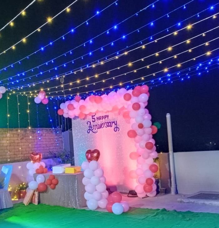 Pink and White reverse balloon decoration for birthday, anniversary, and other party.