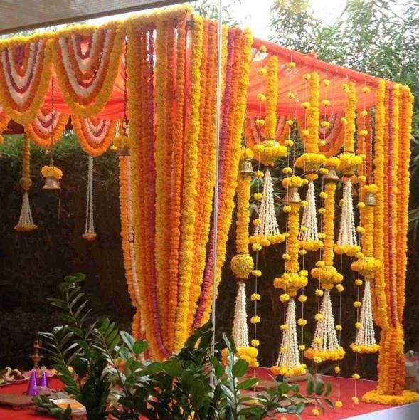 Yellow and Green South Indian Style Mandap Decoration